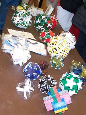 食後、再度Exhibitionルームへ。が、ドアがロックされていて入れない。しょうがないので食堂に戻り、Reza氏に頼んでロックを解除してもらう。その後は、またWenninger氏と並んで多面体づくり。 | ||||