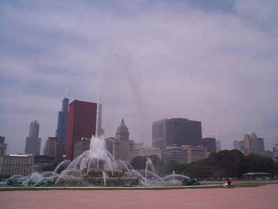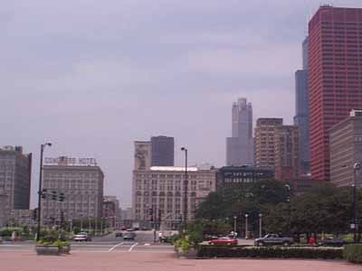 今日の待ち合わせ場所であるCongress Plaza Hotel前。2003年のIPP会場である。ここから歩いて、公園を抜けてAquariumの方へ向かってみよう。 |