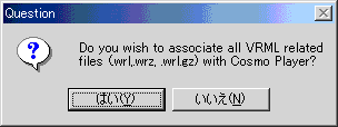 VRMLファイルの拡張子をCosmoPlayerに関連づけるかをたずねるウィンドウが表示されるので、「はい」をクリックします。 |